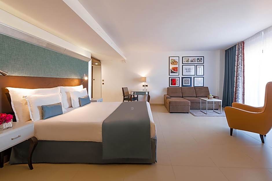 Top-floor junior suite with a spacious terrace with sun loungers and views of the Grand Harbor. It comes with free Wi-Fi, mini-bar and a Smart TV..