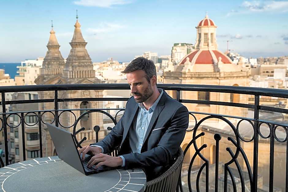 Each suite is individually designed and has a spacious terrace with sun loungers and views of The Grand Harbor. It comes with free Wi-Fi and mini-bar.